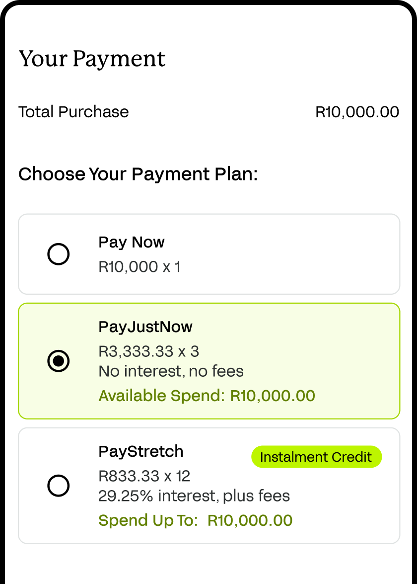 Yes, zero deposit purchases. Think extra spending relief for trusted PayJustNow shoppers to make their first instalment at a later date.